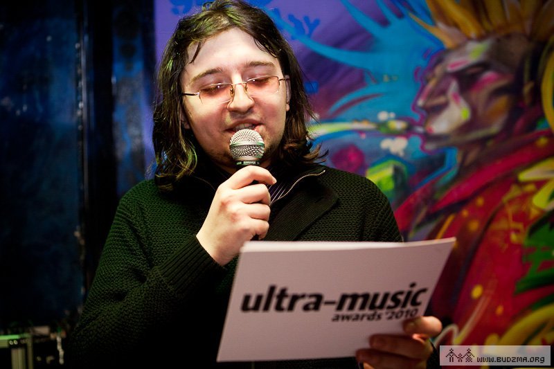 На фота: апошняя Ultra-Music Awards прайшла ў лютым 2013 году ў клюбе «Цэнтр». Вячаслаў Радзівонаў абвяшчае пераможцу ў адной з намінацыяў. На дальнім пляне — вядучы прэміі Павал Сьвярдлоў.