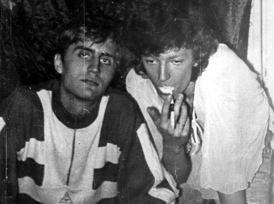 Год 1989. На фота заснавальнікі Neuro Dubel: першы гітарыст гурта Генадзь Агейчык і хлопчык з курчавымі валасамі Саша Кульлінковіч
