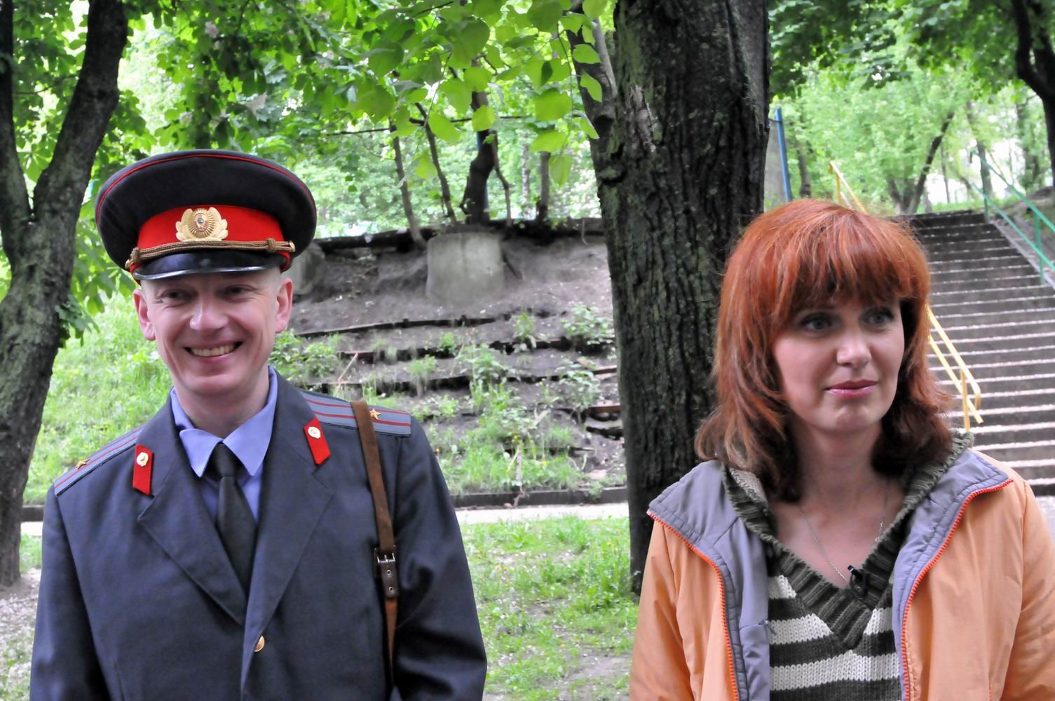 Наогул жа, першы кліп, які мы здымалі з Сашам быў „Гагарын“ (1997). У гэтым кліпе здымаўся хросны нашай старэйшай дачкі Сяргей Кавалёў. Здымкі праходзілі ў славутым на той час ДК „Луч“. Мы зьнеслі туды ўвесь магчымы рэквізыт для герояў кліпу. Здымалі на добраахвотных пачатках. Асноўная ідэя гэтага кліпу была ў тым, што Саша прыходзіць у клюб, а ў ім — усе героі СССР. На тэлебачаньні мы ўзялі значкі, павесілі героям. Памятаю, як малявала Максу Івашыну вусы тушшу для павеек, ён быў Фрэдзі Мэркуры. Гэта было ўсё такое самастрэльнае і разам з тым прысутнічаў і моцны дух, энэргія і сапраўднае жыцьцё.
