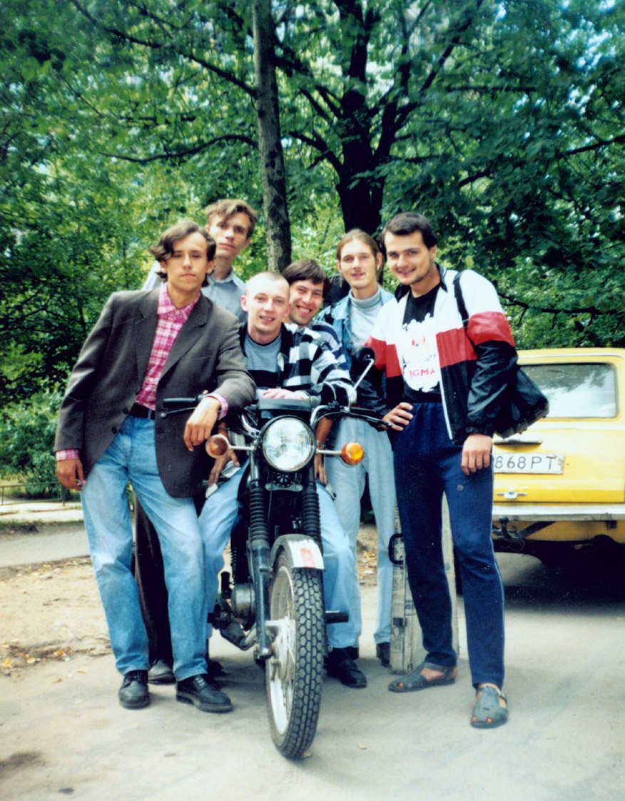 Год 1994. Адзінае фота, якое захавалася з 94-га году. Нехта можа падумаць, што музыкі тупа бухаюць, але насамрэч яны проста прыселі адпачыць ад працы падчас запісу альбома «Битва на мотоциклах».