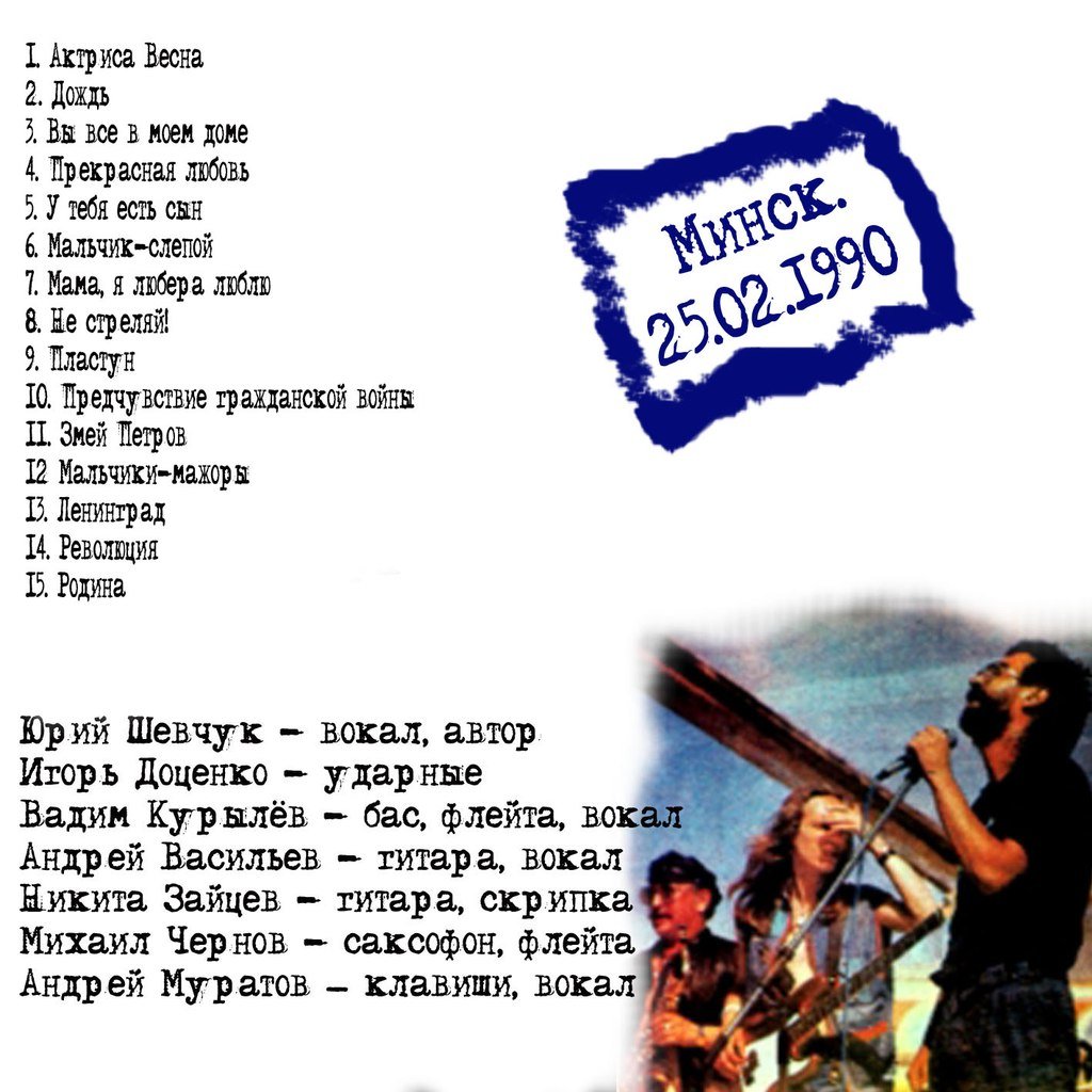 Да 1990 году адносіцца бутлег гурта запісаны ў Менску і датаваны 25.02.90. Запіс, сярод іншага, зьмяшчае рарытэтную песьню «Вы все в моем доме». У гэтым жа годзе запісаны акустычны выступ Шаўчука і Мікіты Зайцава ў менскай Філярмоніі, прымеркаваны да 10-годзьдзя гурта.