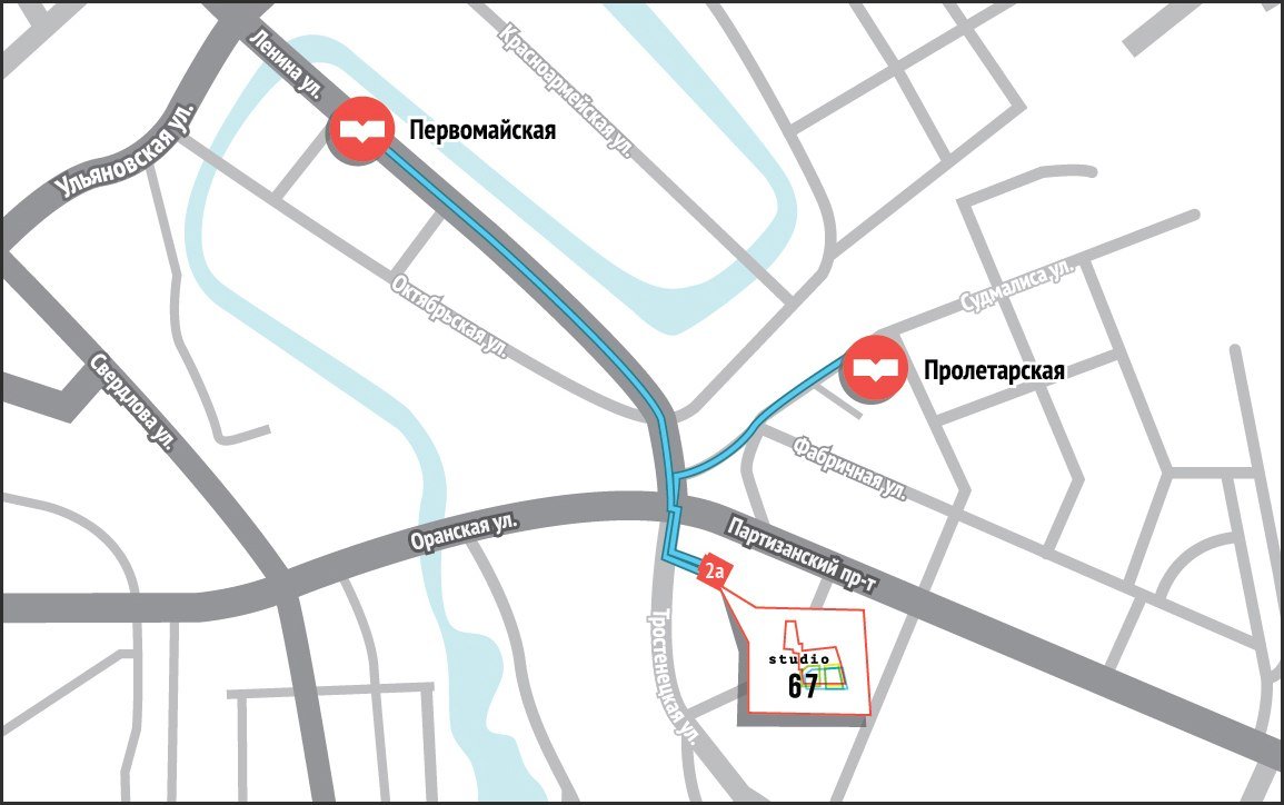 Studio 67 знаходзіцца за 5—7 хвілінаў хады ад станцыі мэтро «Пралетарская», на самым пачатку Партызанскага праспэкту, будынак 2а (плян разьмяшчэньня/навігацыя па клюбе). Сюды можна наведацца і да канцэрту — на рэцэпцыі квіткі на выступ Паліны Рэспублікі прадаюцца без камісіі (час працы і кантакты Studio 67).