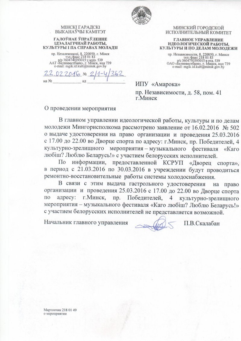 Кіраўнік tuzin.byculture.org пра забарону на правядзеньне музычнага Дня Волі ў Палацы спорту.