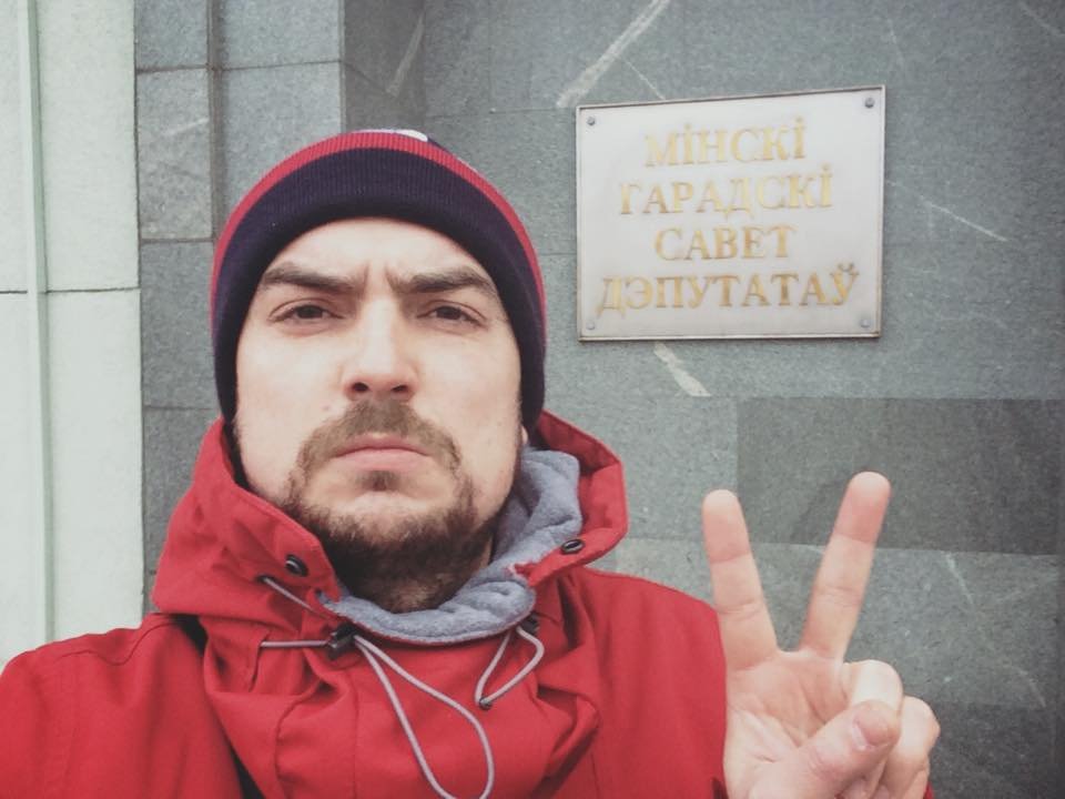 Антон Азізбякян перад уваходам у Менгарвыканкам, фота з рахунку ў Facebook