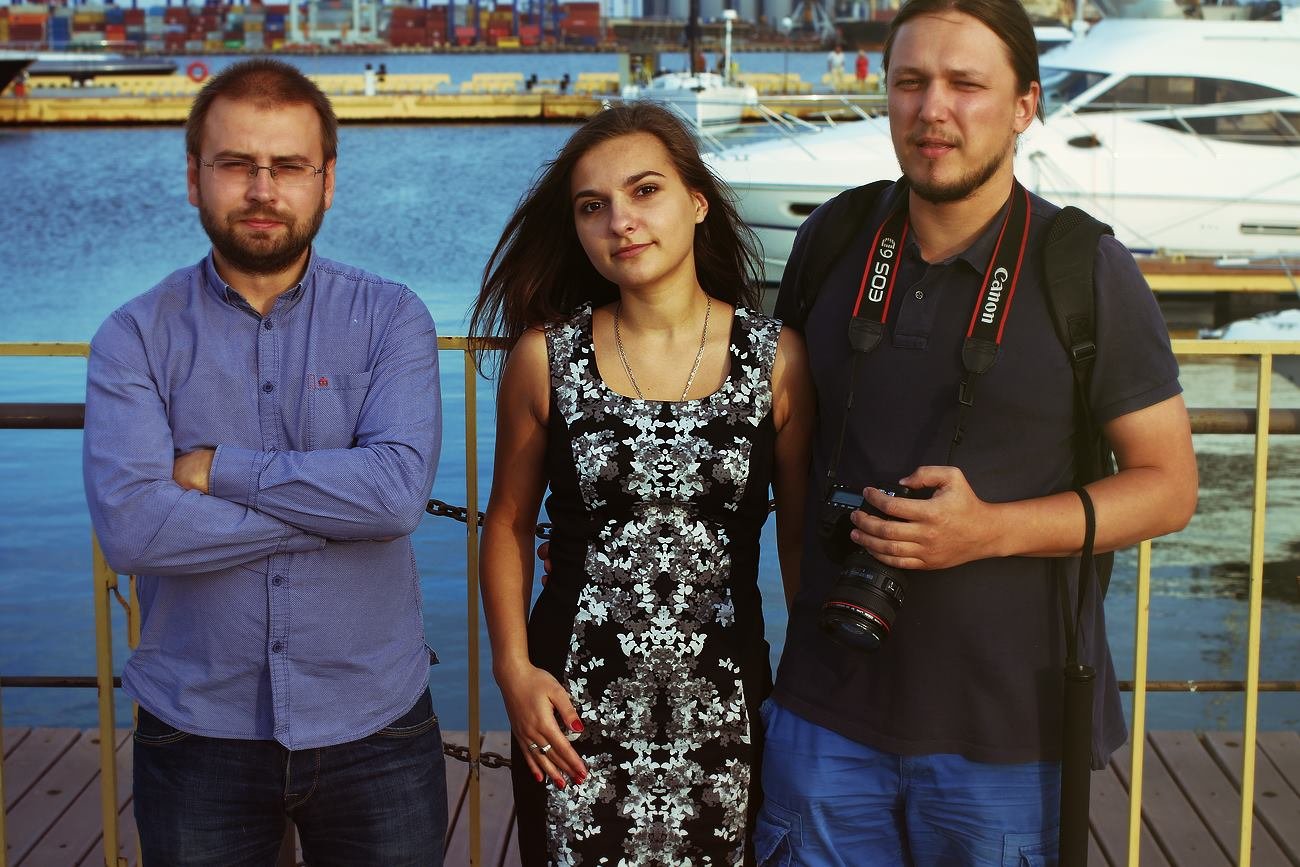 Рэдакцыя TuzinFM (зьлева направа): Сяргей Будкін, Хрысьціна Дарапей, Яўген Шапчыц