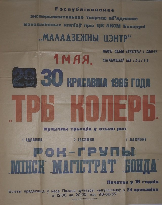 Афіша фэстывалю «Тры колеры — 1986», які зладзіў Анатоль Мяльгуй. З асабістага архіву Стыва Крамэра
