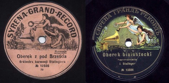 Гарманіст Юзэф Сталінгэр прыкладна ў 1912—1913 гадах найграў на кружэлку традыцыйны народны танец — абэрак. Адзін і той жа запіс на адным выданьні мае імя «Абэрак з-пад Берасьця», на другім — «Абэрак Беластоцкі». Абедзьве кружэлкі захоўваюцца ў зборы варшаўскага калекцыянэра Ежы Гогача.