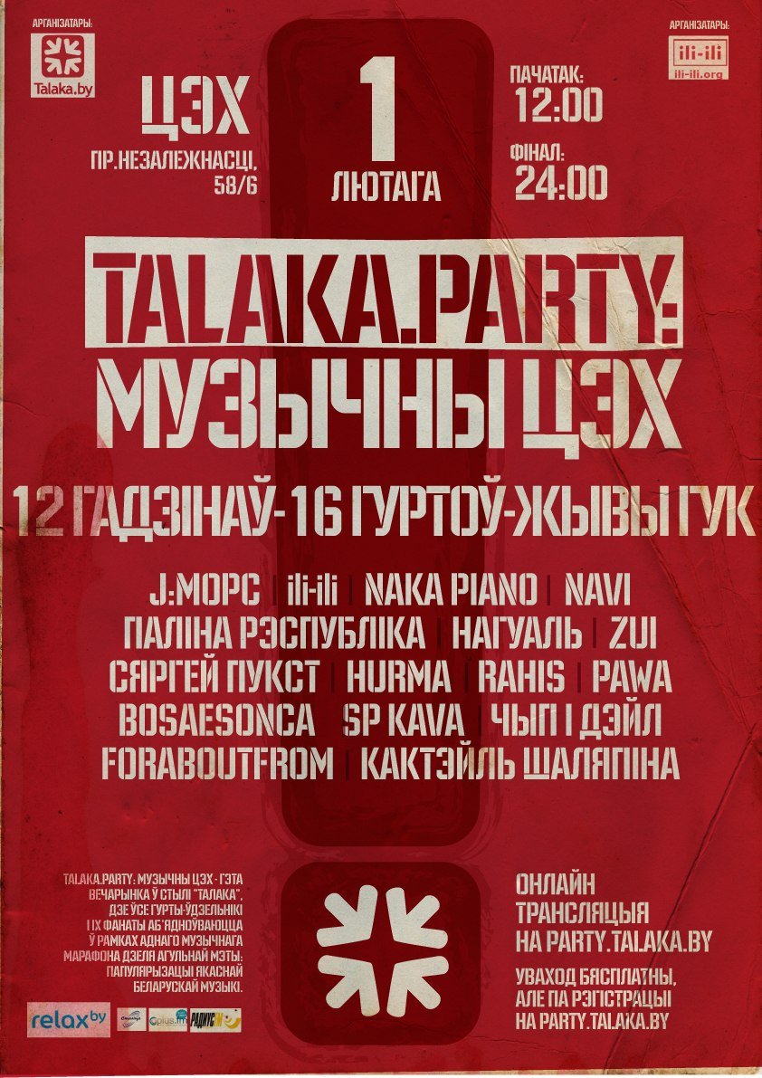 Talaka.Party: музыка яднае (поўны расклад музычнага маратону)