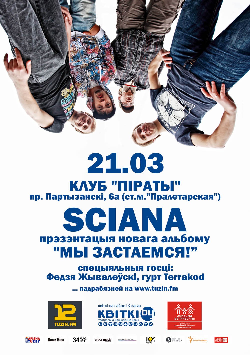 21.03.2014. Прэзэнтацыя альбому гурта Sciana «Мы застаемся». Пры ўдзеле Федзі Жывалеўскага і Terrakod. Клюб «Піраты» (пр-т Партызанскі, 6а). 19:00