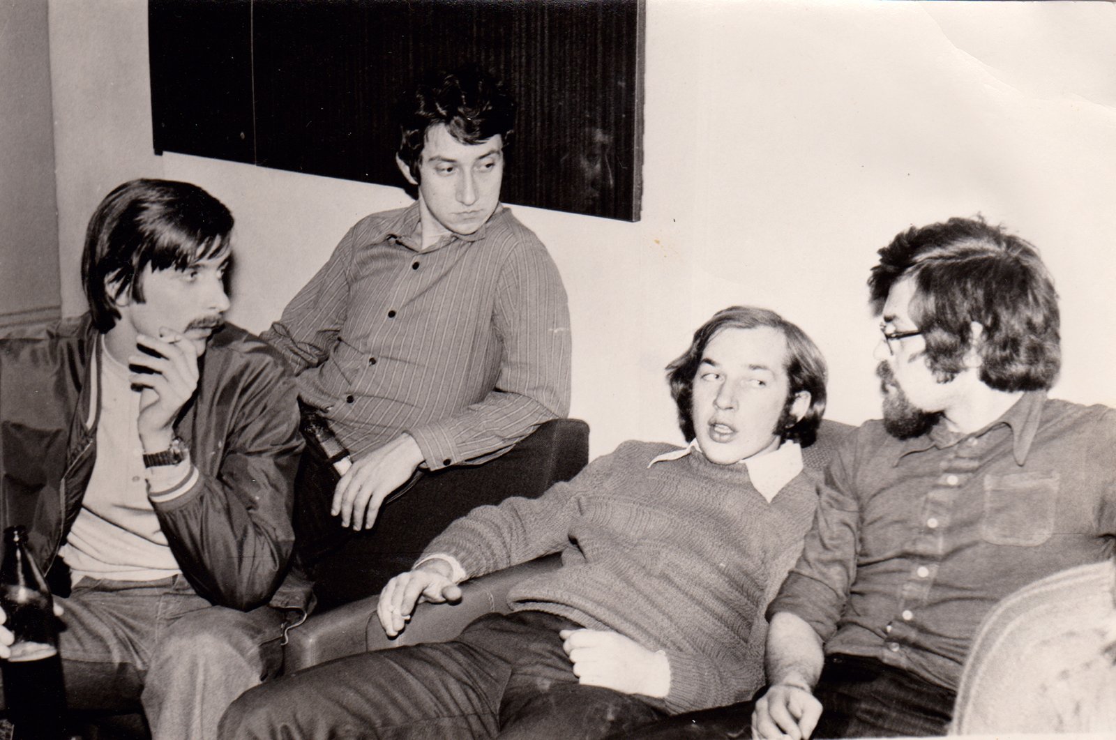 На фота: «Шпакі» падчас рэпэтыцыі: Ю. Болатаў, А. Гаўрыловіч, В. Чыжэўскі, Э. Ваданосаў