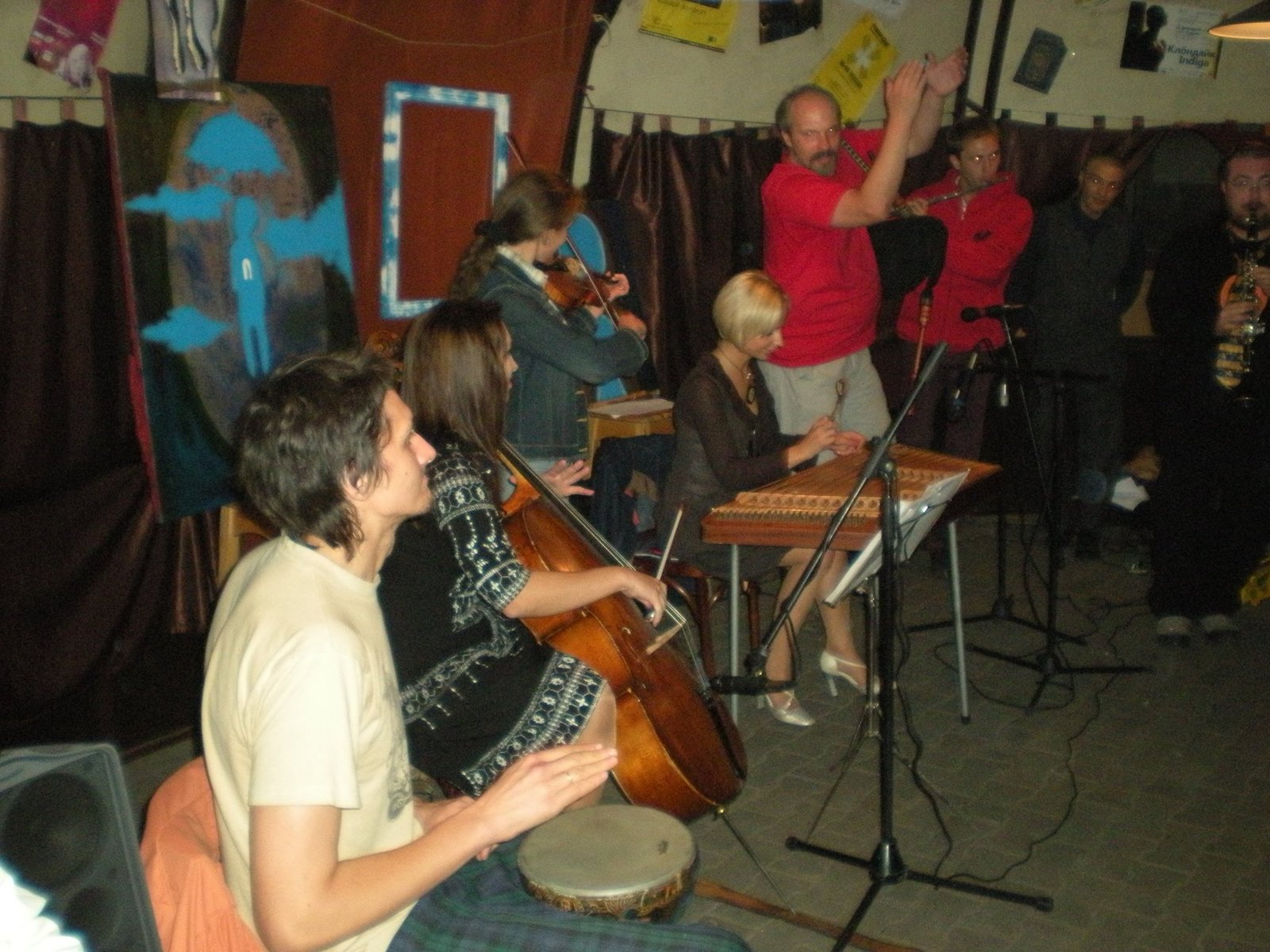 На фота: фэстываль «Жыдовішча-2009». Зьміцер Сідаровіч — у чырвонай суколцы з дудой. Акром яго, можна пабачыць Лявона Паўлёнка з джамбеем («Нагуаль»), Тацяну Матафонаву са скрыпкай і гурт Minsker Kapelye.