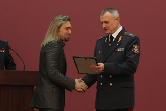 Як паведамляе афіцыйны сайт МУС, шэраг дзеячаў культуры і мастацтва былі ўзнагароджаны на адмысловай цырымоніі за падрыхтоўку мерапрыемстваў, прысьвечаных 100-годзьдзю беларускай міліцыі. Юбілейны мэдаль «100 гадоў міліцыі Беларусі» атрымаў Анатоль Ярмоленка. Народны артыст Беларусі адзначыў, што для яго мэдаль ад міністра Шуневіча «ўспрымаецца па-асабліваму». Сьпеваку Пятру Елфімаву была абвешчаная «падзяка Міністра ўнутраных справаў». Калектыўная ўзнагарода таксама была ўручаная гурту «Тяни-Толкай», яе атрымаў адзін з удзельнікаў калектыву Павал Тараймовіч. Саліст адзначыў, што яны частыя госьці на акцыях, якія праводзіць міліцэйскае ведамства.